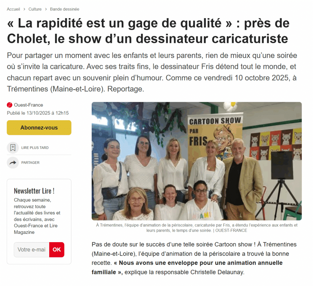 article de presse 1997 du journal l'hotellerie consacré à la caricature animation de Fris, champion de la discipline !